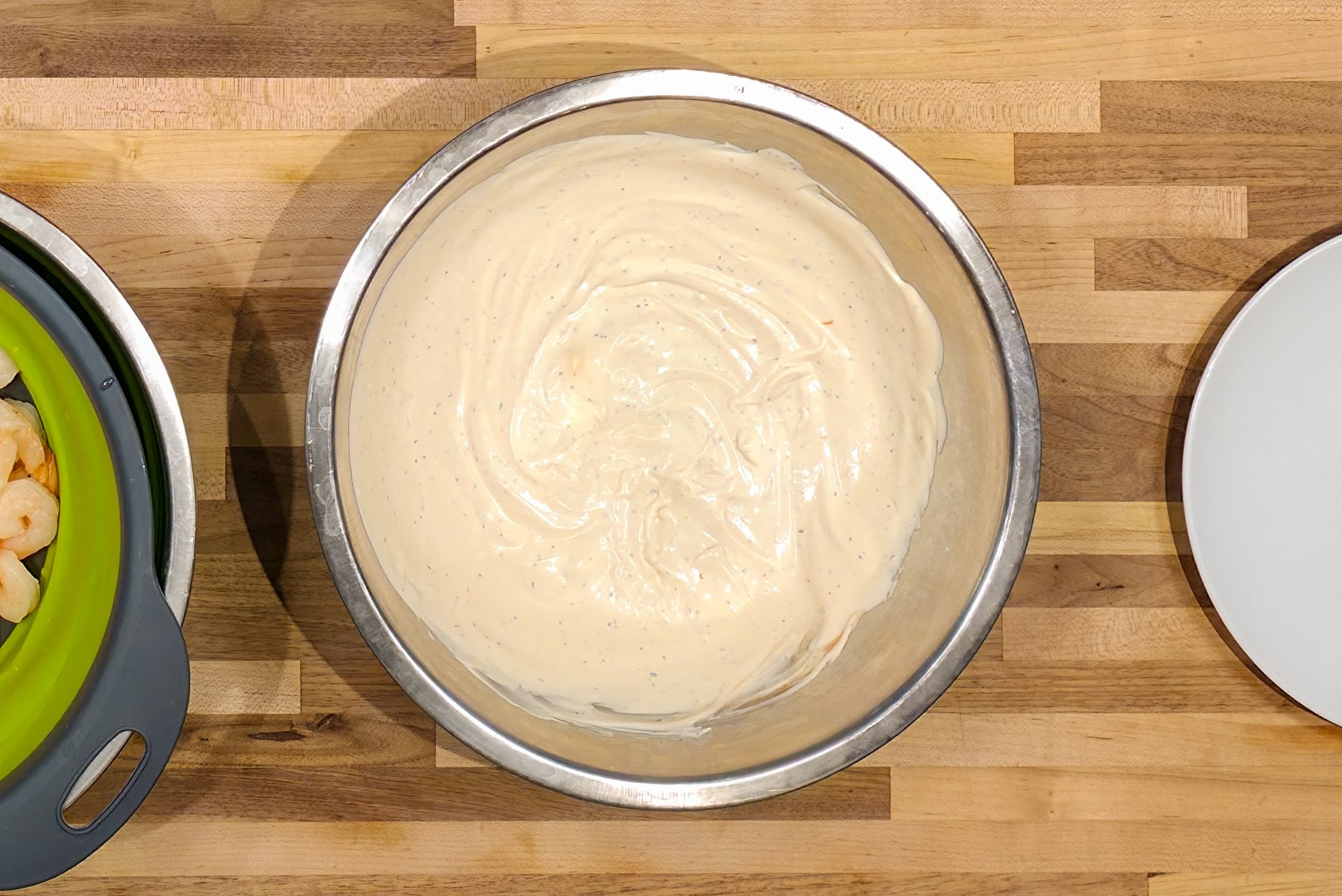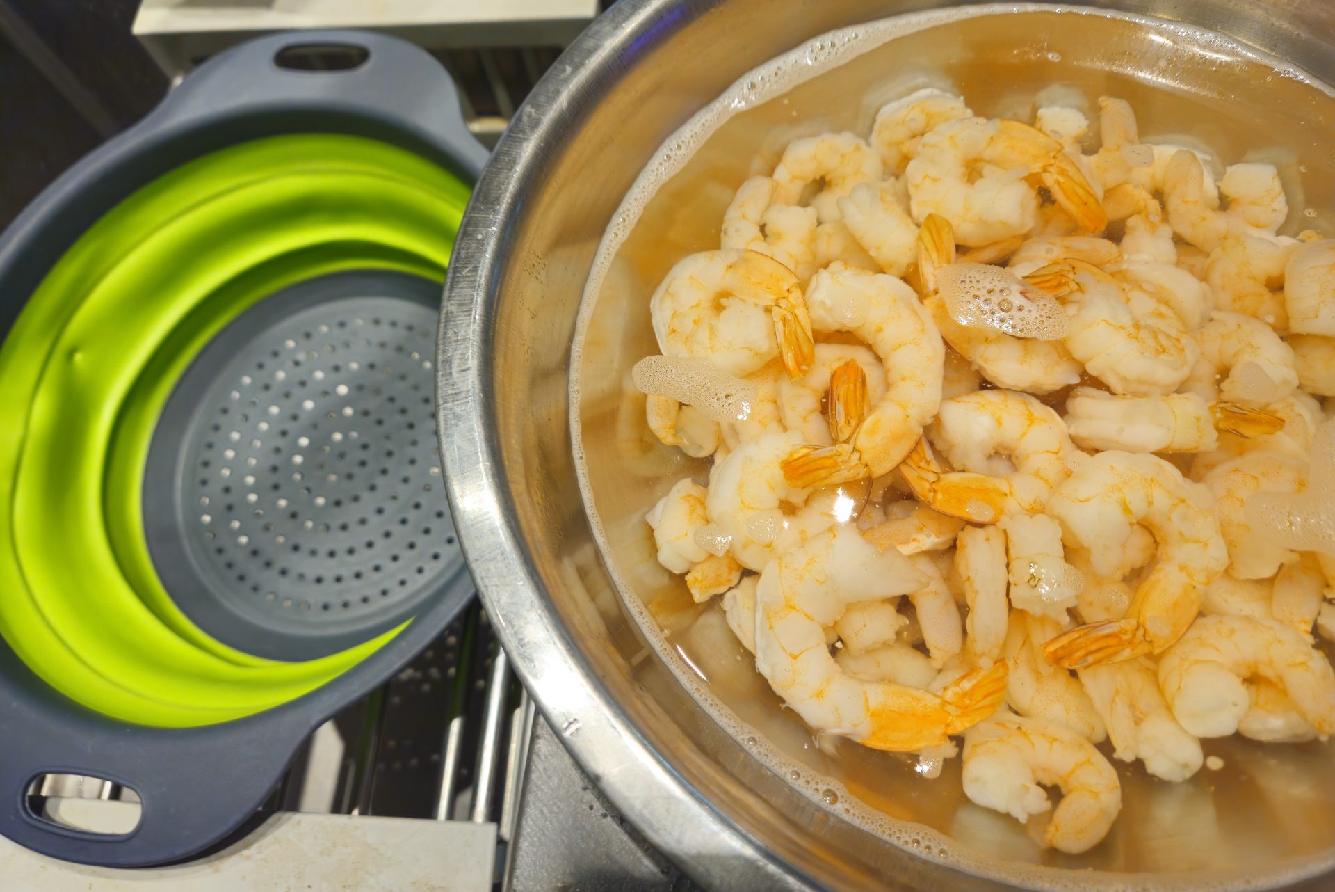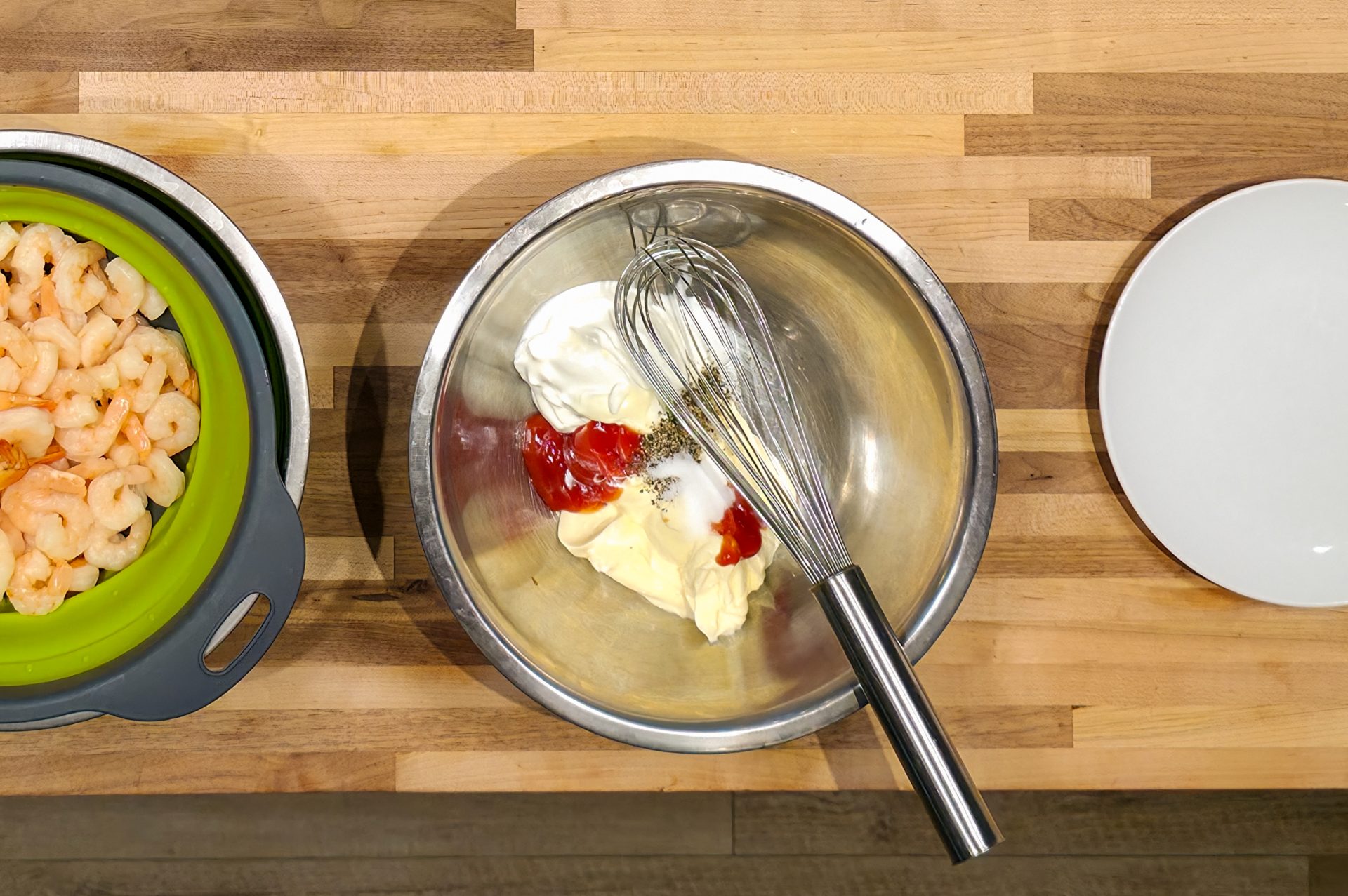 * You can use any cooked, frozen shrimp that you have available or that you like. I prefer large or extra-large shrimp, but often also use smaller versions. Shrimp needs to be peeled. They can, but don’t have to, have the tail on based on your preference. Options without the tail will be easier to eat, especially while covered with sauce, while the option with the tail will be more stylish. This recipe asks for cooked shrimp, which are typically pink (gray-colored shrimp are raw), and will also state on the packaging that they are cooked. These kinds of shrimp do not need to be further cooked and only need to be defrosted quickly in hot water. You can use raw (gray-colored shrimp) too, but in that *You can use any cooked, frozen shrimp that you have available or that you like. I prefer large or extra-large shrimp, but often also use smaller versions. Shrimp needs to be peeled. They can, but don’t have to, have the tail on ones based on your preference. Options without the tail will be easier to eat, especially while covered with sauce, while the option with the tail will be more stylish. This recipe asks for cooked shrimp, which are typically pink (gray-colored shrimp are raw), and will also state on the packaging that they are cooked. These kinds of shrimp do not need to be further cooked and only need to be defrosted quickly in hot water. You can use raw (gray-colored shrimp) too, but in that case, you need to defrost them in the refrigerator or cold water, then add lemon juice, olive oil, salt, and pepper, followed by sautéing until done (usually 3-5 minutes) and then cooling. Even though I generally prefer cooking shrimp by sautéing instead of buying already cooked ones, boiled ones are a great option for this cocktail since the cocktail sauce has a very rich flavor that compensates for not seasoning and sautéing the shrimp.case, you need to defrost them in the refrigerator or cold water, then add lemon juice, olive oil, salt, and pepper, followed by sautéing until done (usually 3-5 minutes) and then cooling. Even though I generally prefer cooking shrimp by sautéing instead of buying already cooked ones, boiled ones are a great option for this cocktail since the cocktail sauce has a very rich flavor that compensates for not seasoning and sautéing the shrimp.